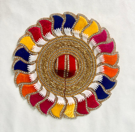 Made with fine prints on high-quality fabric, this beautiful ornament features vibrant colours and detailed handwork that mimics the natural beauty of peacock feathers. Ideal for a Laddu Gopal in your home, for a temple, to gift to a loved one or for festivals and celebrations, it is the perfect blend of tradition and craftsmanship.