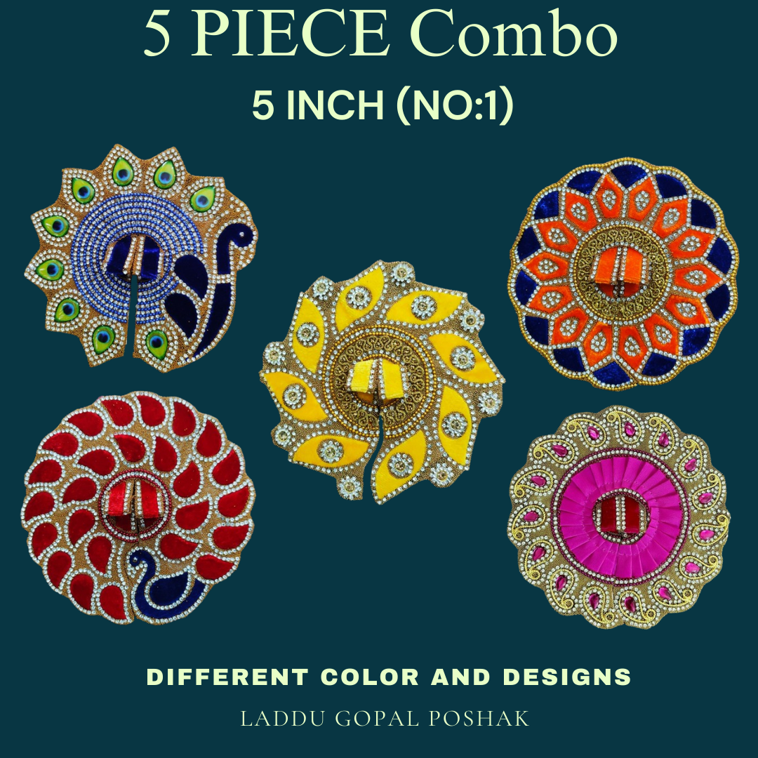 RADHAKRISHNA CreationLaddu Gopal Dress Size 0 l Ladoo Gopal Dress l Kanha Ji Dress (Set of 5 Poshak)(Size 1=5 inch) - 5 Inch