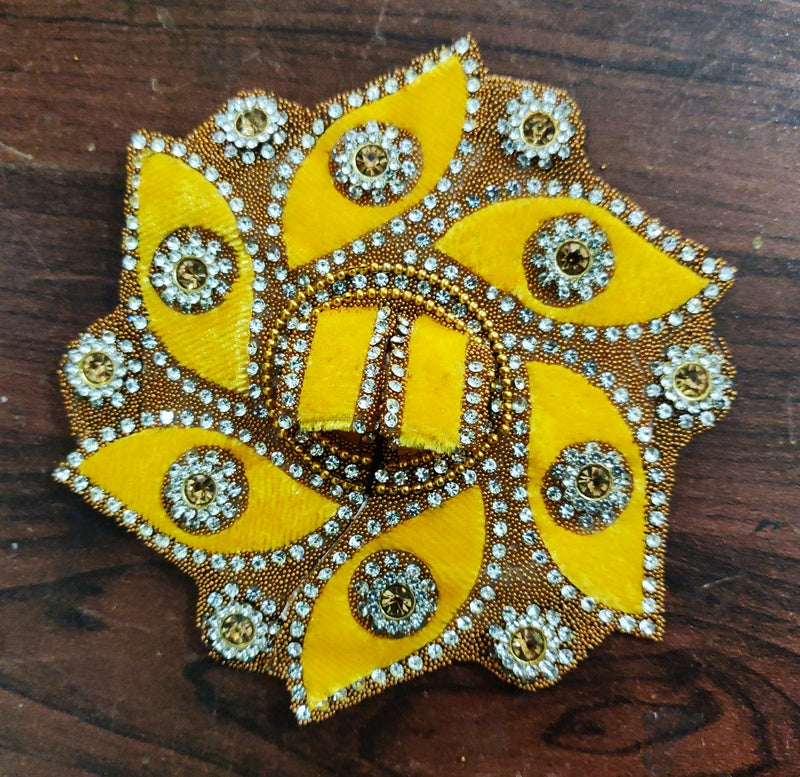 RADHAKRISHNA Creation Laddu Gopal Poshak Fancy Dress, Kanhaji Dress, Thakor ji Dress, New Beautiful Designer Vastra ladoo Gopal Dress, sudarsha //4 inch Yellow - 4 Inch / Yellow
